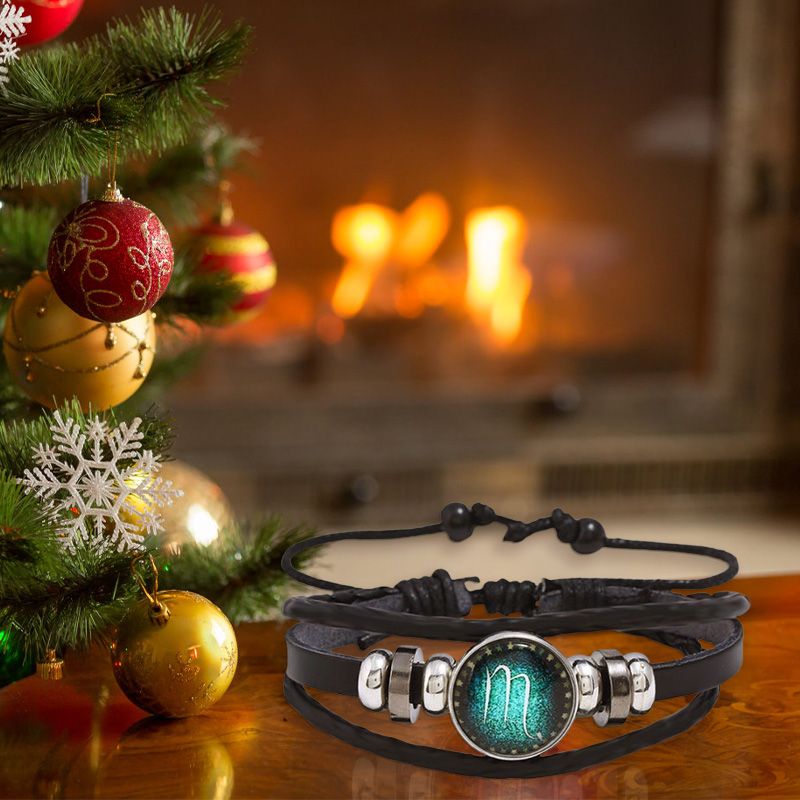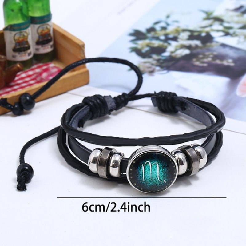 Package Includes: 1 * Luminous 12 Constellations Bead Leather Woven Bracelet