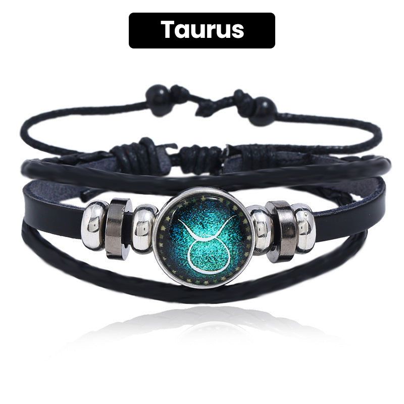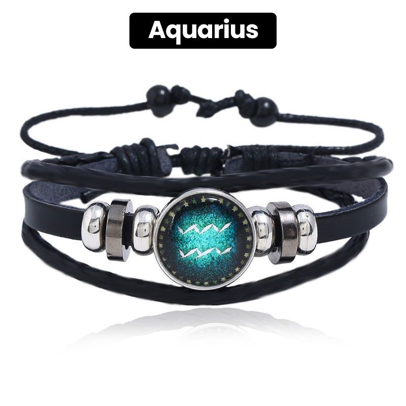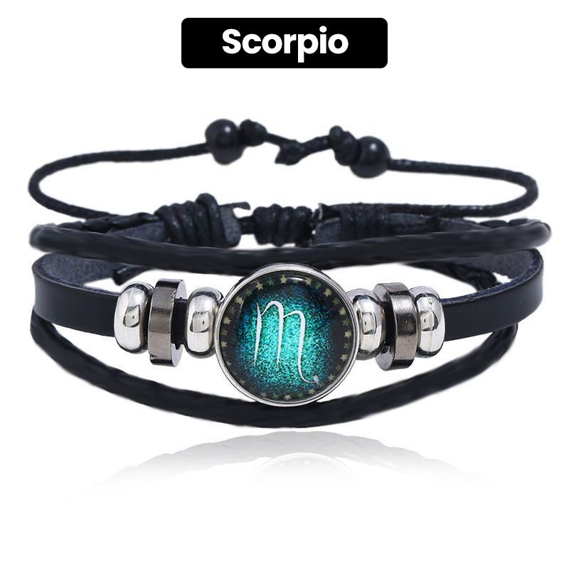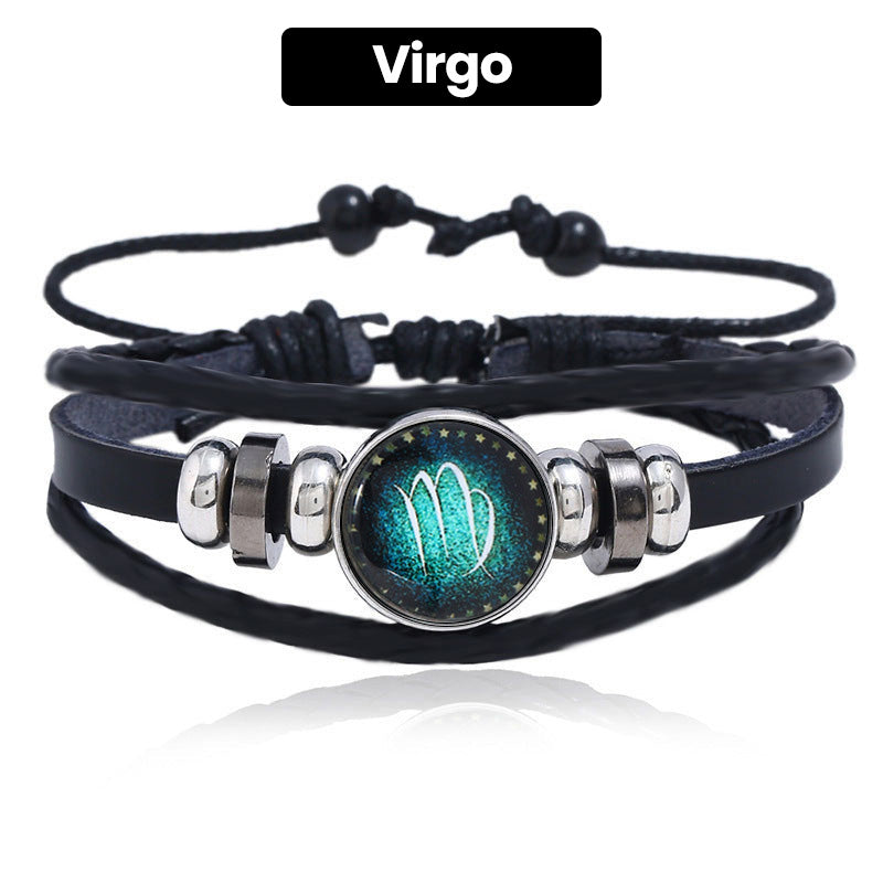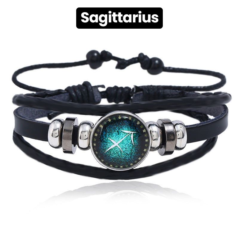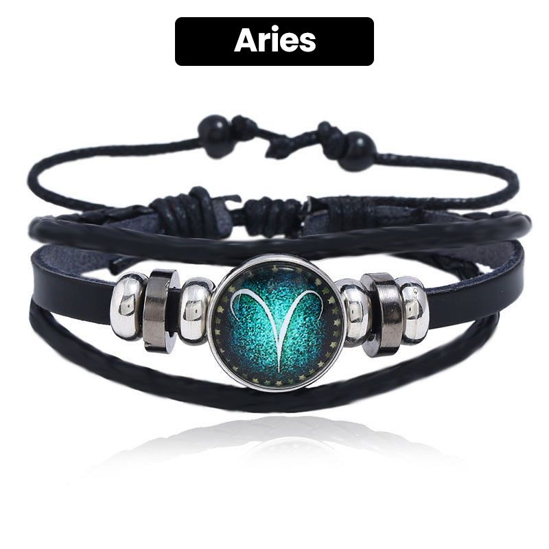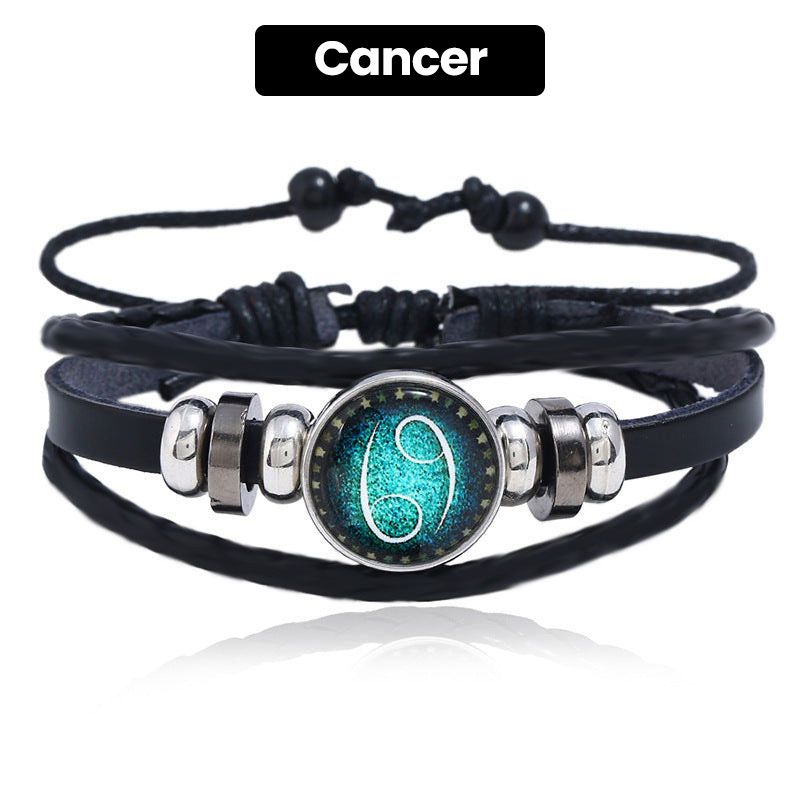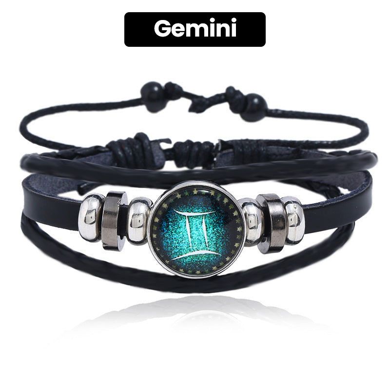 Luminous 12 Constellations Bead Leather Woven Bracelet - Great Gift